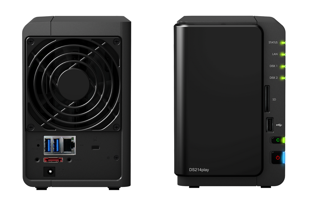 Synology DS214 Play podporuje vedle diskového pole RAID 0 (proužkování) také RAID 1 (zrcadlení) pro ochranu dat před selháním jednoho z disků. Uskladněná data lze též zálohovat na externí diskové jednotky, s jejichž pomocí je možné zároveň rozšířit kapacitu úložiště i nad 8 TB. Na zadní straně zařízení jsou přítomna dvě vysokorychlostní rozhraní USB 3.0 a jedno v podobě eSATA.