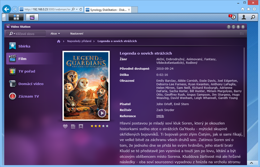 Video Station promění webový prohlížeč v přehrávač filmů.