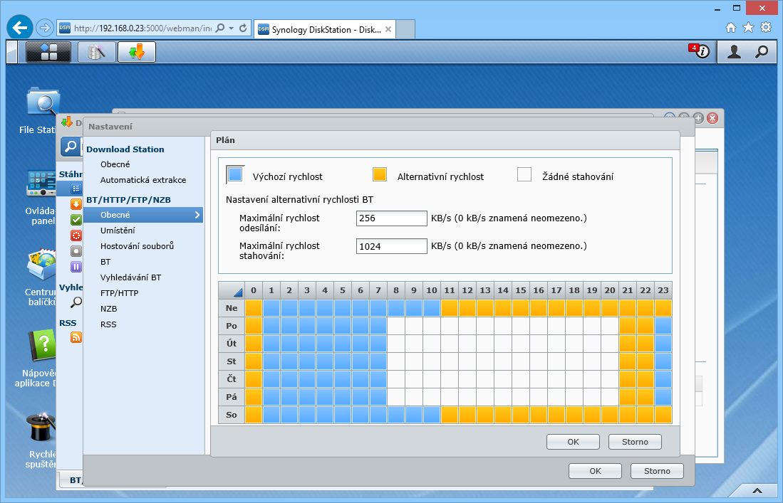 Díky Download Station lze stahovat i objemné soubory tak, aby stahování nenarušovalo jiné internetové aktivity.