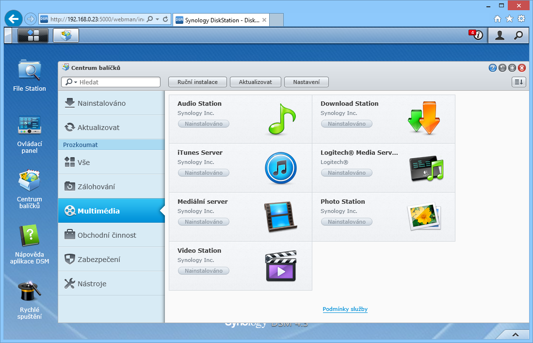 Synology DS214 Play se sice v marketingových materiálech prezentuje spíše jako multimediální zařízení, ale v podstatě jde o výkonnější NAS server s vhodnou softwarovou výbavou. Systém Synology DSM i v případě tohoto zařízení podporuje instalaci dalších balíčků s jinými než multimediálními funkcemi.