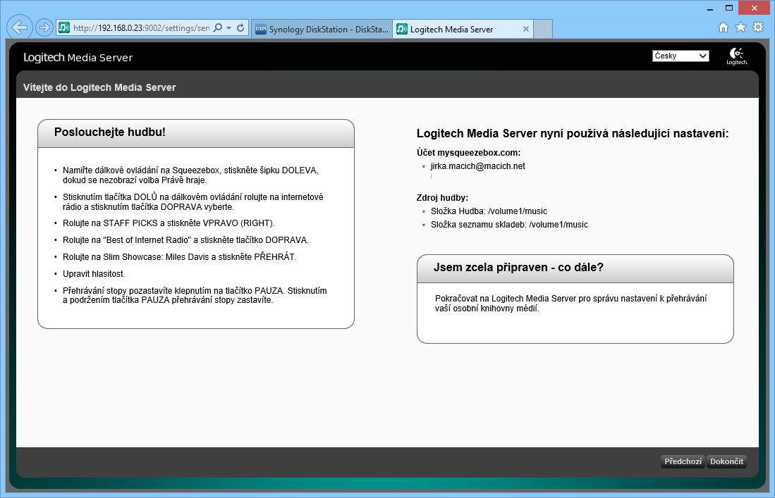Milým překvapením je balíček Logitech Media Server pro majitele IP přehrávačů Logitech Smart Radio (dříve Logitech Squeezebox). Ty trestuhodně nepodporují tradiční DLNA server, takže běžně je nutné nainstalovat na počítač obslužný program pro přehrávání vlastní hudební sbírky, přižečemž počítač musí být zapnutý. Synology DS214 Play může plně převzít jeho úlohu.