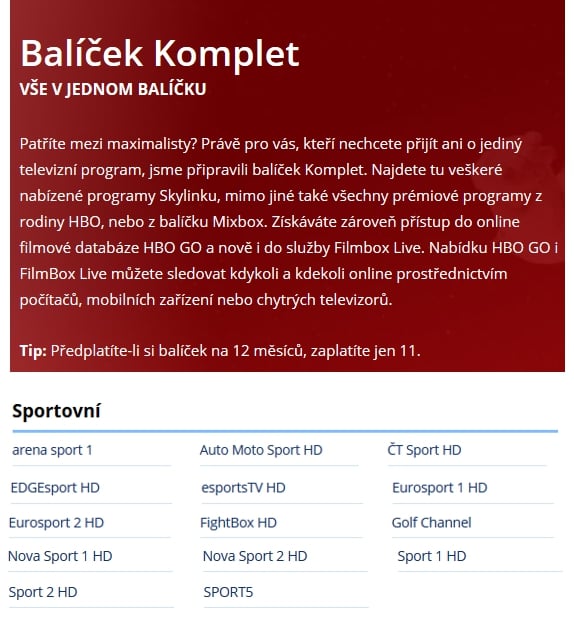 Balíček Skylink Komplet (klikněte pro zvětšení)