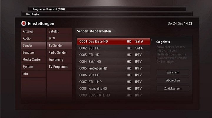 Jedná se o hybridní box pro technologie DVB-S a IPTV, přičemž satelitní část zajišťuje partner SKY Deutschland a IPTV část Vodafone. Box má pevný disk 500 GB, který je vyjímatelný a čtečku smart karet – podporovány jsou ale jen karty od SKY Deutschland. V příštích dílech se zaměříme na Vodafone Spain a Vodafone Portugal, kde je 4K služba přímou konkurenci TV UMA operátora NOS, představené v minulé části.