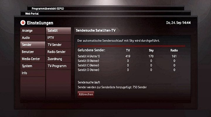 Samostatná nabídka Vodafone v podstatě ve velké většině kopíruje FTA nabídku německých programů na satelitu Astra 1. Nabídka odpovídající ceně nastává až při kombinaci s nabídkou SKY.