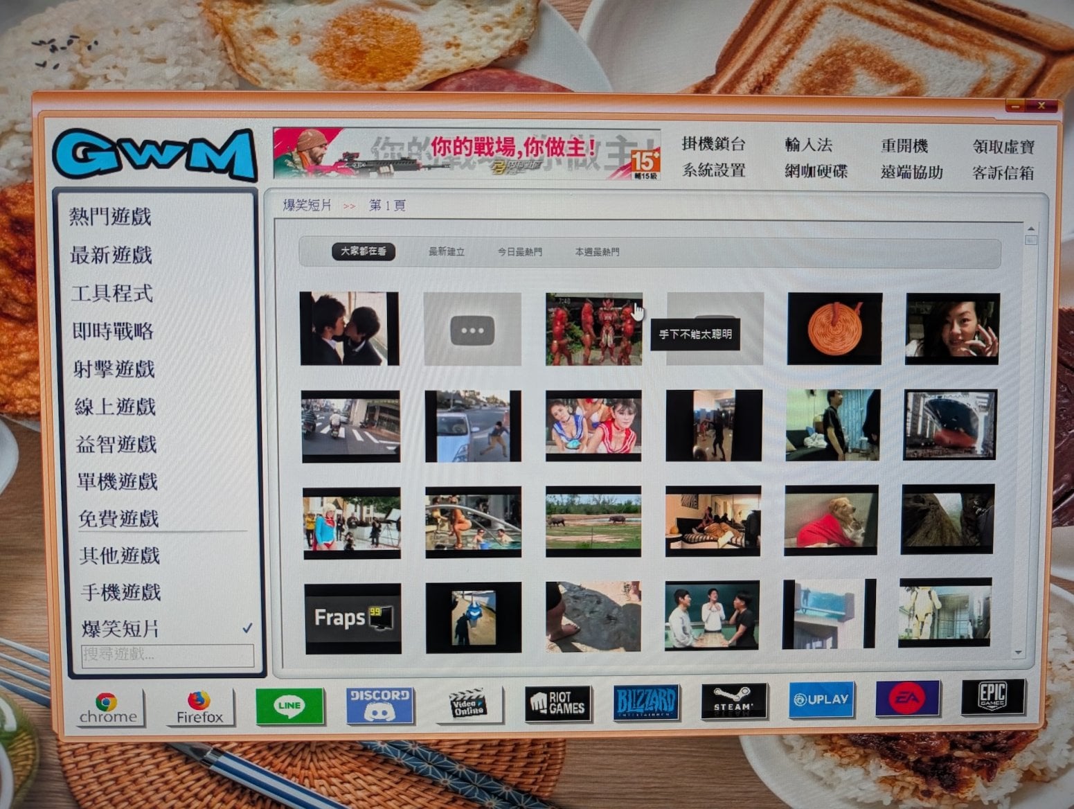 LHH a další podobné podniky mají nainstalovány různé launchery her a aplikací. V tomto případě šlo o GWM. Z těchto appek lze spouštět velké množství předinstalovaných her, případně si odsud rozjet Steam nebo Battle.net. Součástí launcheru je i třeba aplikace pro sledování streamované televize (Unblock).