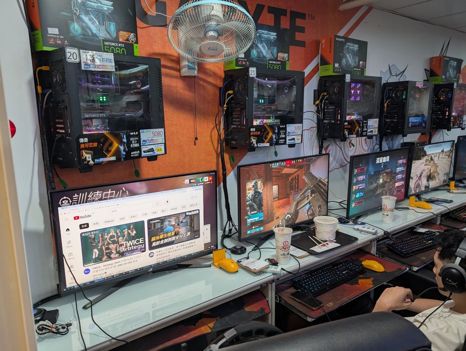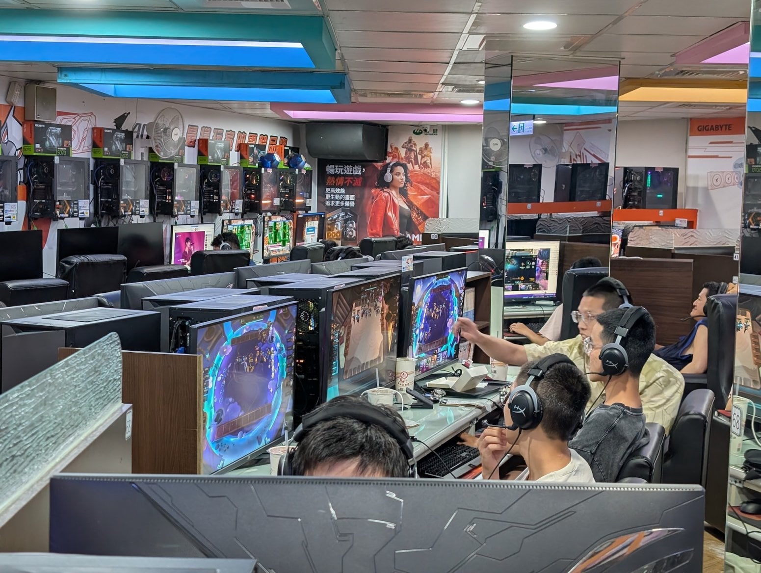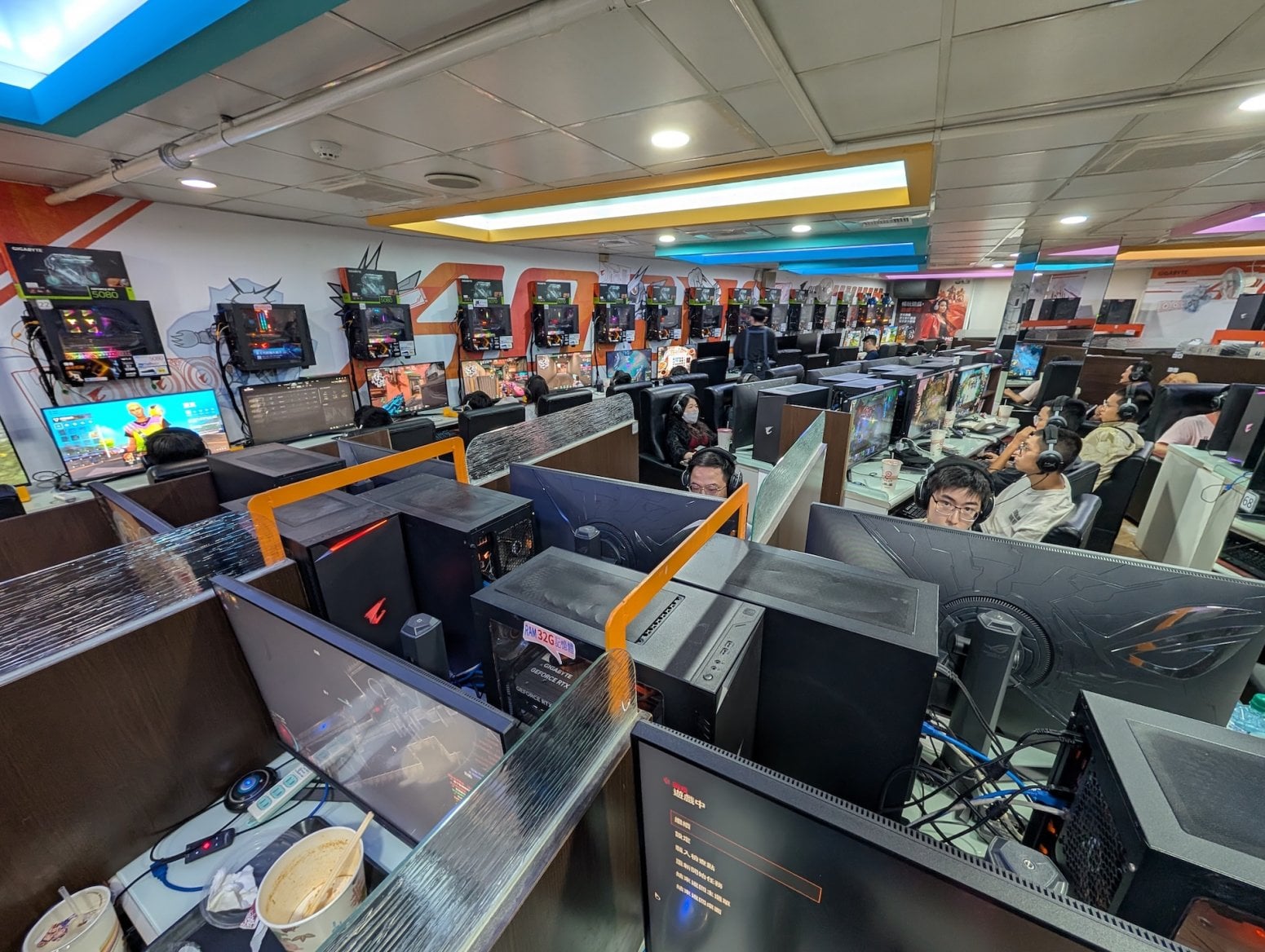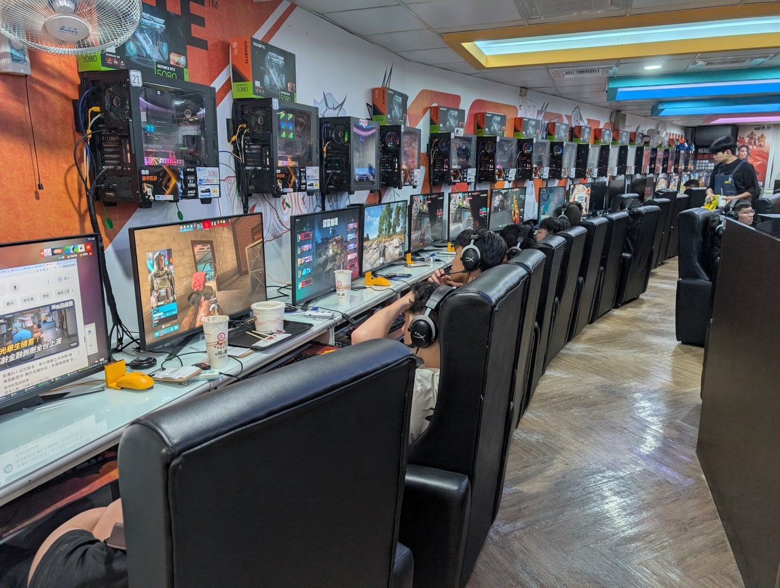 Tentokrát jsem vyrazil do jedné známé PC kavárny v Tchaj-peji, hlavním městě Tchaj-wanu. Něco takového sem jednoznačně zapadá, Tchaj-wan je totiž světovou základnou počítačového byznysu. Pochází odsud firmy jako Asus, Acer, Gigabyte, MSI, ASRock, Palit, Gainward a mnoho dalších. Cedule těchto brandů jsou všudypřítomné. Samozřejmě se zde díky TSMC vyrábí i grafické čipy nebo procesory. Ostatně i Jensen Huang a Lisa Su, šéfové Nvidie a AMD, pochází z Tchaj-wanu.