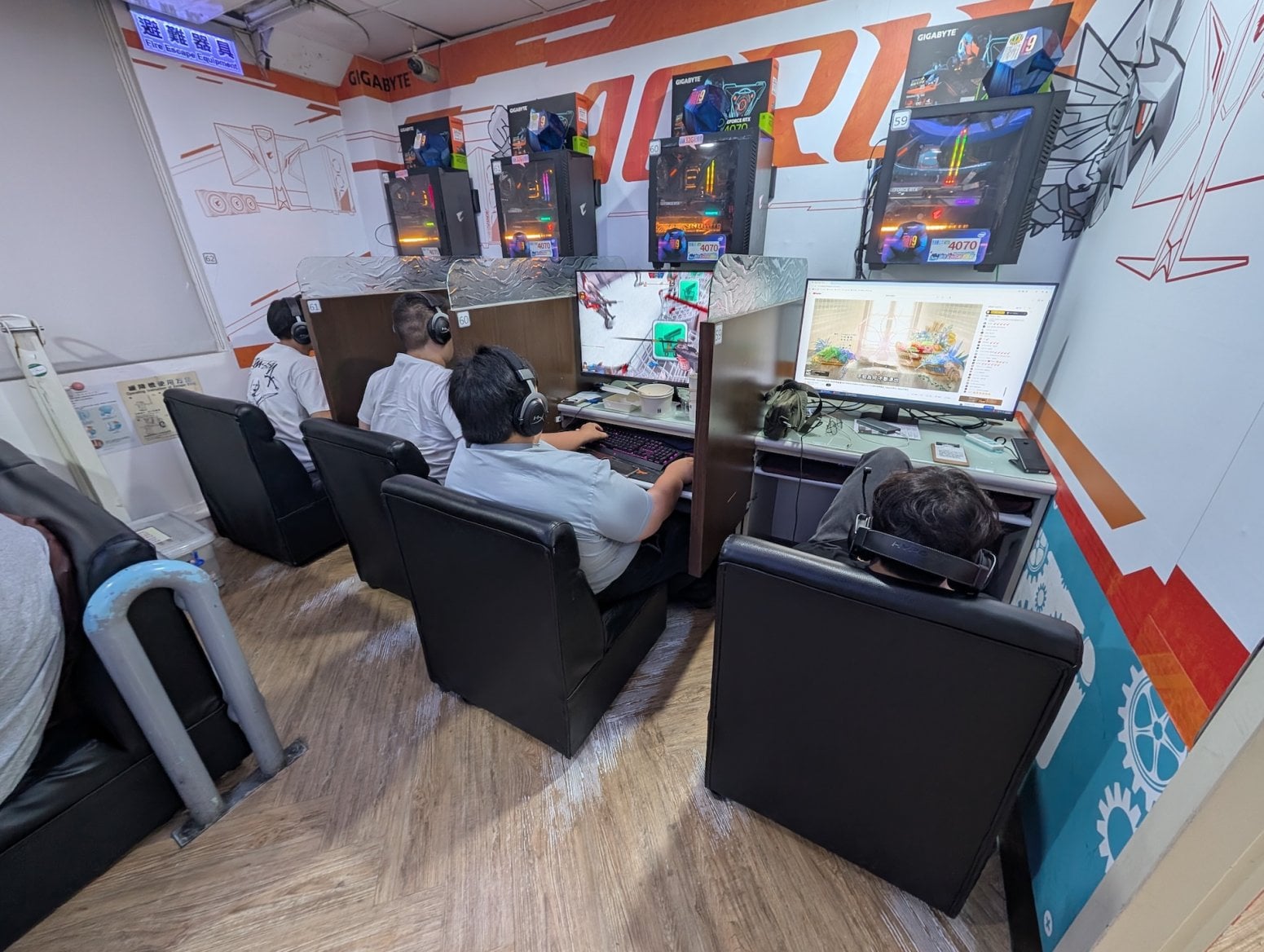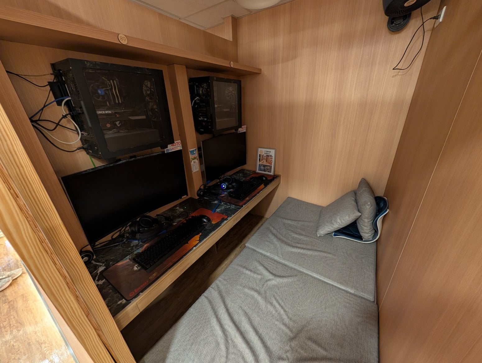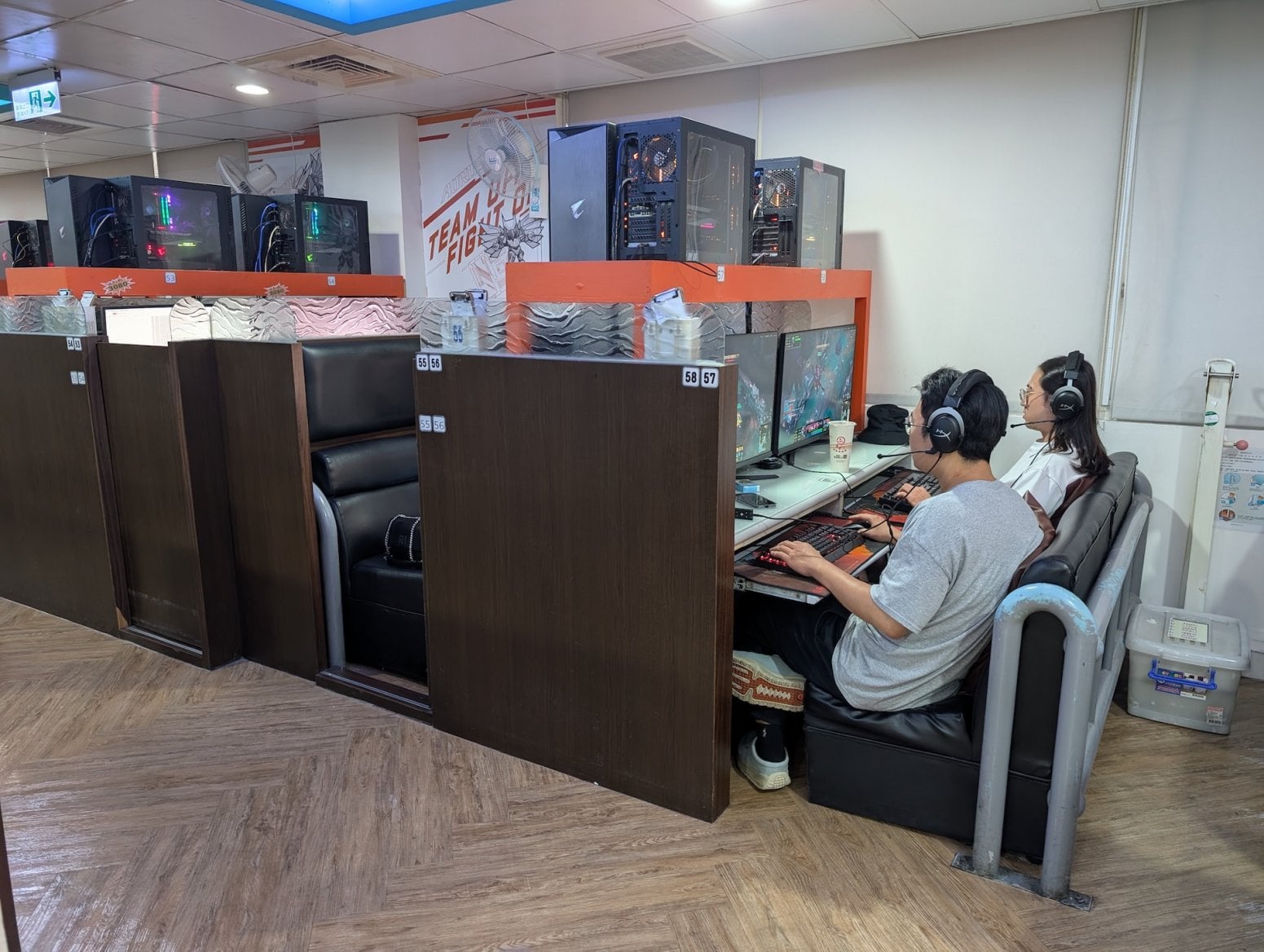 Kavárna má tři patra. To první je tradiční open space, kde jsou na sebe nalepeny kóje s počítači a konektory pro nabíječky. Nikdo si nikoho moc nevšímá, všichni jsou zabraní do hraní. Vrchní dvě patra nabízí luxusnější zážitek, a sice soukromé kóje s počítači, sezením a případně ležením. V Asii je poměrně běžné, že lidé na takovém místě přespí, případně si v soukromí přečtou nějakou mangu z obsáhlých knihoven, jenž jsou běžnou součástí heren.