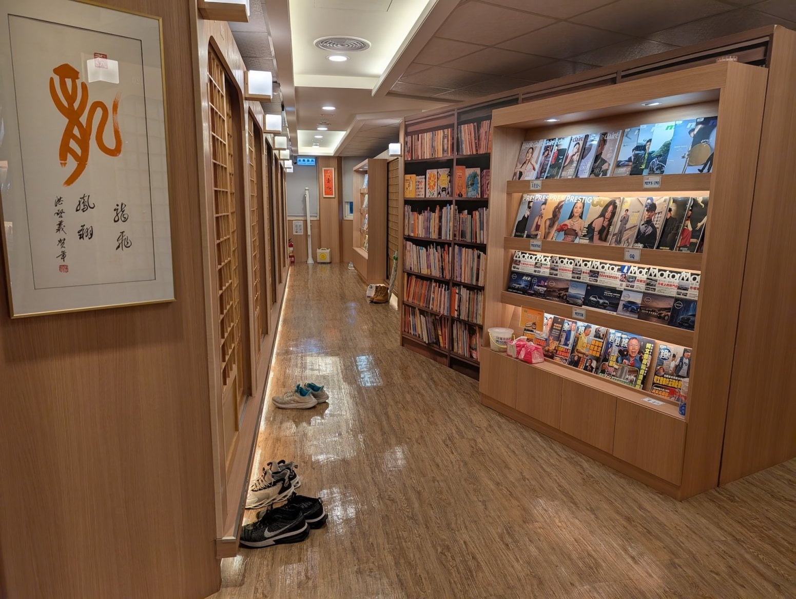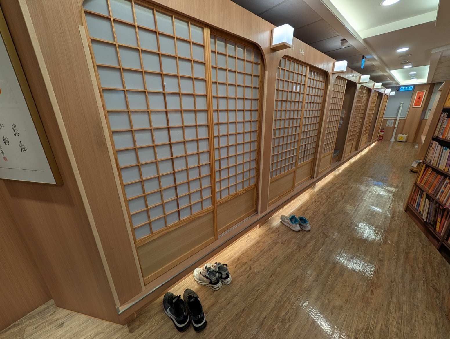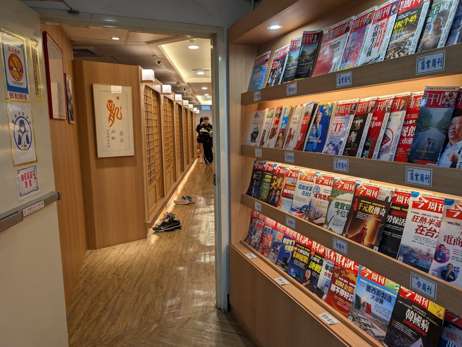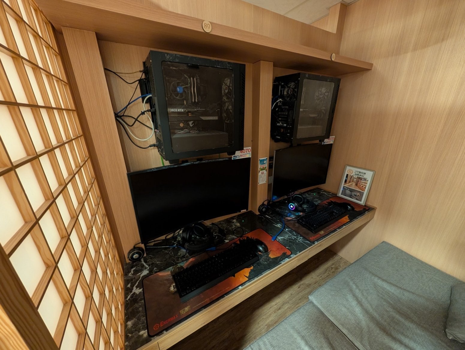 Kavárna má tři patra. To první je tradiční open space, kde jsou na sebe nalepeny kóje s počítači a konektory pro nabíječky. Nikdo si nikoho moc nevšímá, všichni jsou zabraní do hraní. Vrchní dvě patra nabízí luxusnější zážitek, a sice soukromé kóje s počítači, sezením a případně ležením. V Asii je poměrně běžné, že lidé na takovém místě přespí, případně si v soukromí přečtou nějakou mangu z obsáhlých knihoven, jenž jsou běžnou součástí heren.