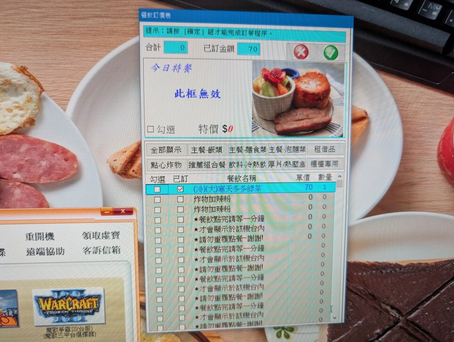 Launcher dále nabízí možnost přivolání obsluhy a objednávky jídla a pití. To vám obsluha donese přímo ke stolu. Dále je viditelná IP adresa pro případnou snazší domluvu pro lokální hraní.