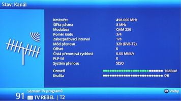 Minimálně od úterního rána nešla naladit síť DVB-T2 společnosti Digital Broadcasting vysílající z Prahy-Novodvorské a Prahy-Ládví.