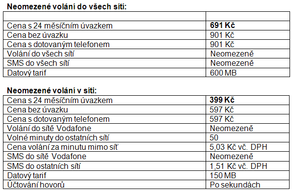 Nynější nabídka od Vodafonu je na e‑shopu dostupná okamžitě a na prodejnách od zítřka. V levnějším z tarifů se hovory účtují po vteřinách.