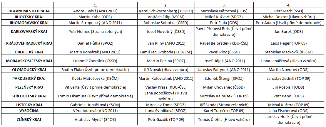 Sestavil ještě žebříček nejhledanějších kandidátů, roztříděný podle krajů, ve kterých kandidují: