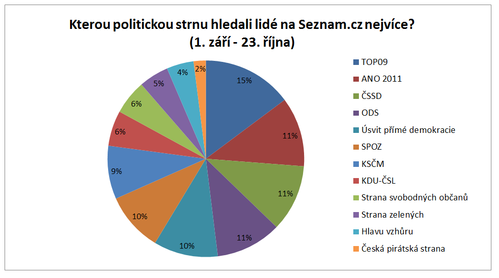 Seznam.cz sestavil žebříček politických stran podle toho, jak četně byly lidmi vyhledávány na Seznamu, a to v období od prvního září do včerejška, kdy zveřejnil výsledky.