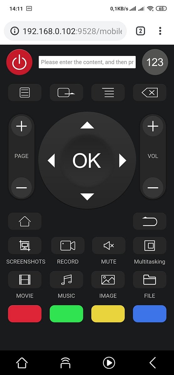 Přístroj rovněž nabízí funkci „virtuální dálkový ovladač“ přes smartphone, viz obrázek níže.