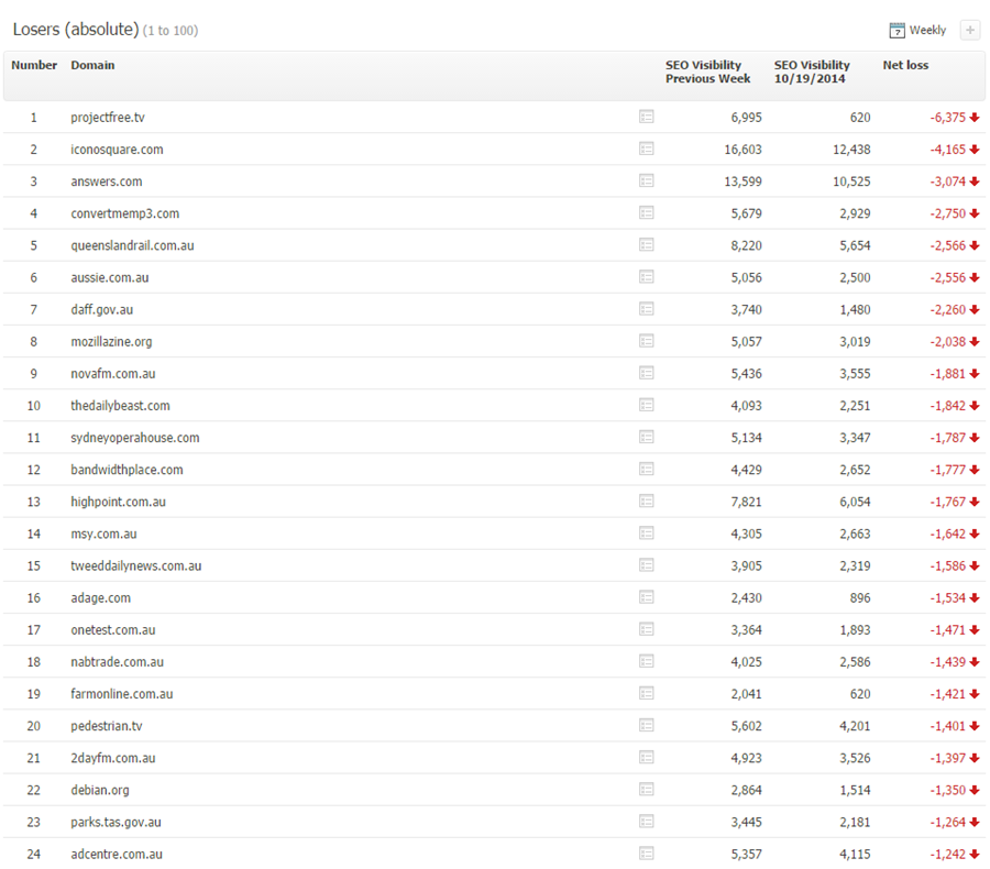 Jak vidíme na následující tabulkách, propady byly ve sledovaných dnech hlavní a poslední aktualizace Penguina následující: