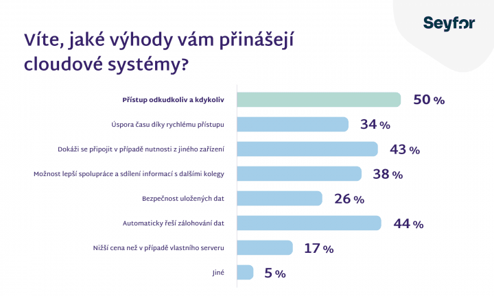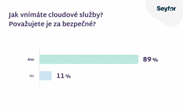 Průzkum probíhal koncem května a zúčastnilo se ho pět set respondentů napříč republikovou. Ukázal například to, že dvě třetiny oslovených zaměstnanců pracuje ve firmě, která cloud nevyužívá. Cloud je přitom levnější i bezpečnější, shodují se v rozhovoru bezpečnostní experti společnosti Seyfor Peter Gajdošech a Milan Ryšavý.