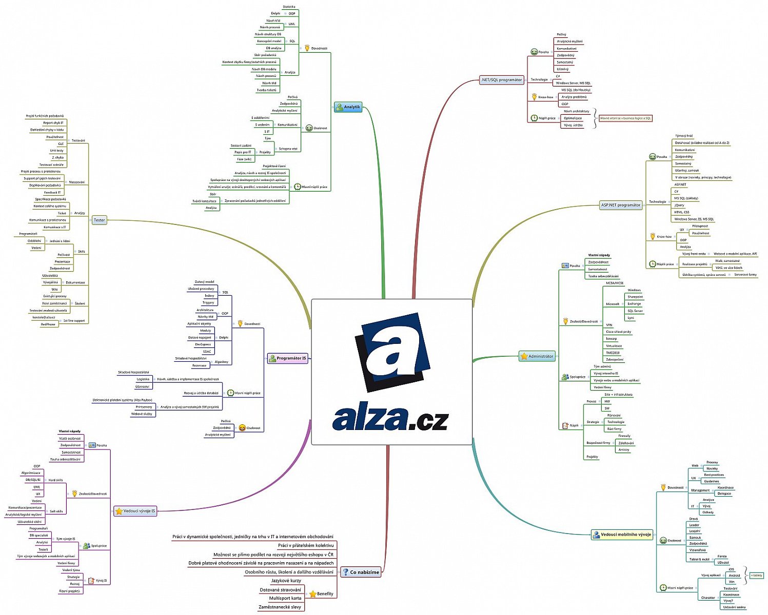 Mezi vývojáři je největší poptávka po specialistech z oblastí ASP .NET, C#, ale i Delphi, které jsou sice starším vývojovým prostředím, ale už dávno dohnaly své ostatní objektové kolegy. Business logika je napsaná v DB na platformě Microsoft SQL Server 2012. Vývojový tým vymýšlí procesy a algoritmy, které ovládají celou firmu (systém rezervací zakázek, distribuce zboží mezi sklady, predikce prodejů apod.). Drtivá většina systémů, které v Alza.cz můžete vidět, jako např. platební automaty, vyvolávače, wifi čtečky a celý automatizovaný systém zakladačů a dopravníků v logistickém centru, pochází z domácí produkce. Jedním z témat je také řízení vývoje a návrh mobilních aplikací pro platformy Android, iOS, Windows Mobile.